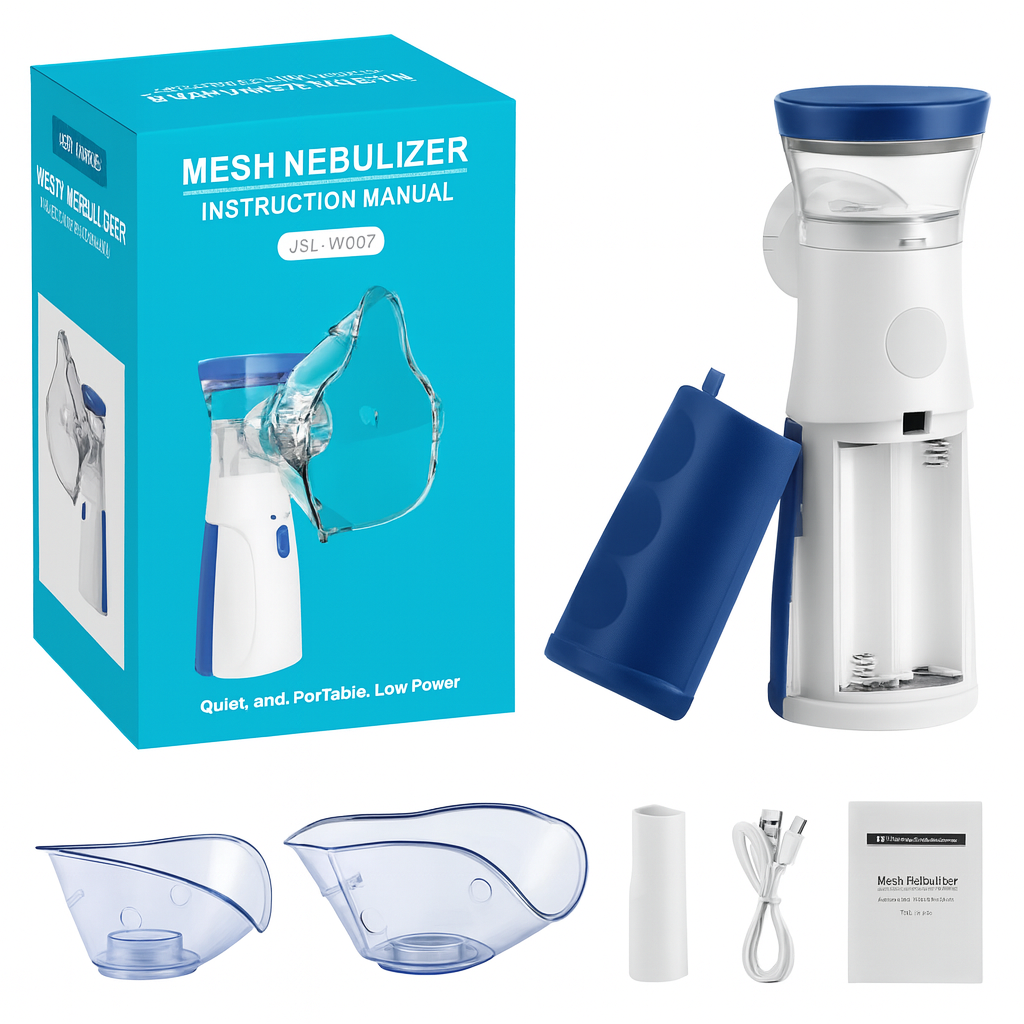 El Nebulizador Portátil convierte el medicamento líquido en una niebla fina, que se inhala a través de la máscara o boquilla para llegar a los pulmones.